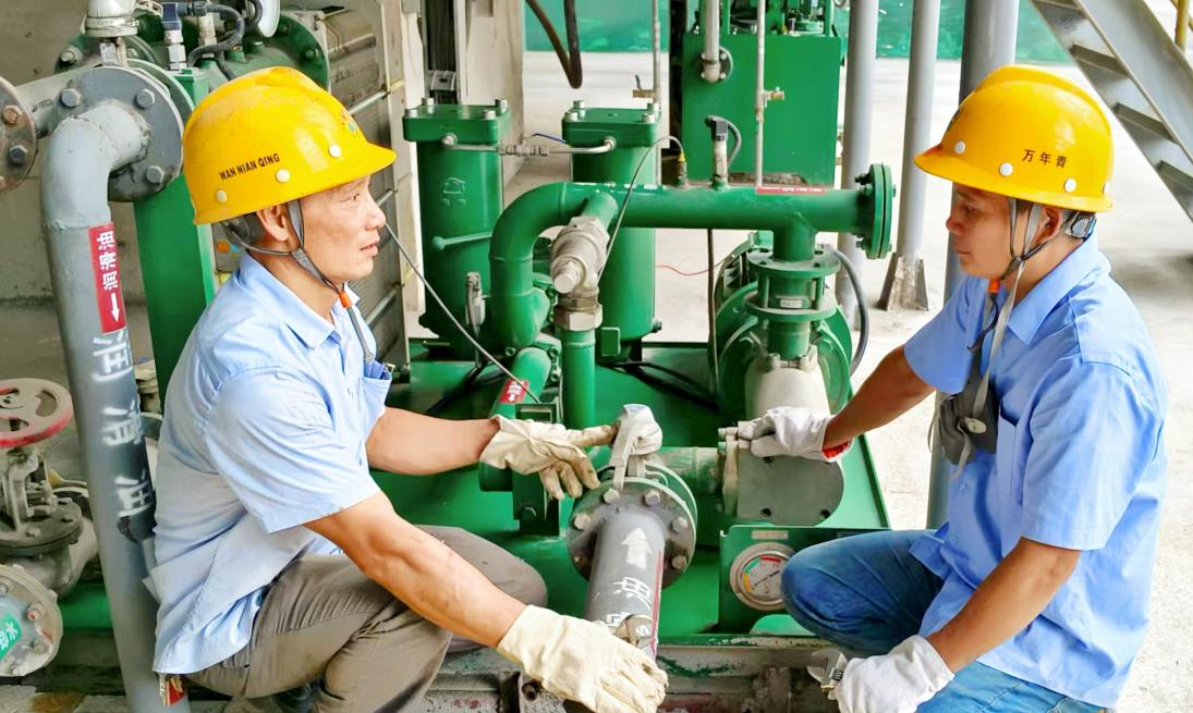 在瑞金萬(wàn)年青公司,生產(chǎn)部維保管理的賴贛南與毛北云是一對(duì)默契無(wú)間的師徒組合。賴贛南作為維保管理維修班長(zhǎng),深耕水泥磨機(jī)維護(hù)維修領(lǐng)域三十余載,技術(shù)精湛,勤懇敬業(yè);毛北云作為維保管理巡檢工,主要負(fù)責(zé)水泥磨機(jī)系統(tǒng)的巡檢維護(hù)工作。